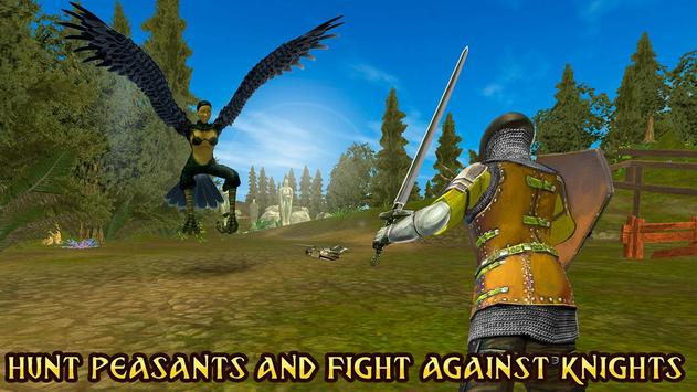 Become this mighty fantastic monster, explore the large world, fight against human warriors, soldiers, and knights, find your way to power and just have fun playing Harpy Survival Simulator 3D!