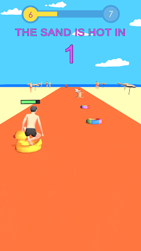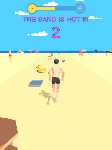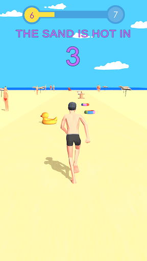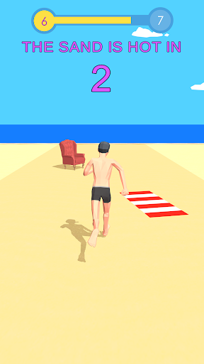 You must dive but the sand is hot as lava! Tap to jump on stuff until you reach the water to complete each level!