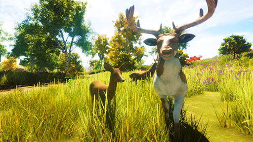 Enjoy the stroll around the map and admire the stunning environment! Starting from your home all the way to the mountains and streams, the high-end graphics make the game incredibly pleasant. The realistic animals , try and chase them all!