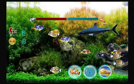 Go Fishing is about catching the fishes in an aquarium and Hiding them behind rock to save them from great white shark.