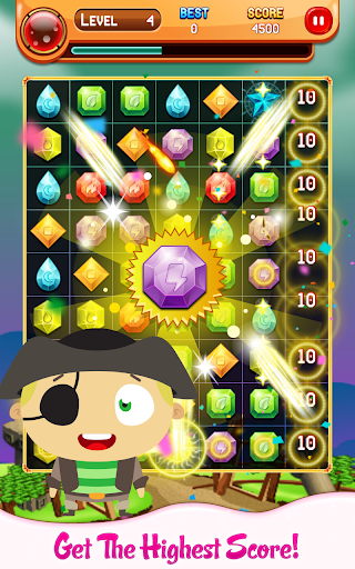 ✔ Arrange 4 same color jewels to perform a lightening Diamond.