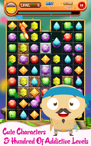 ✔ Arrange 5 same color jewels to perform magic Diamond.