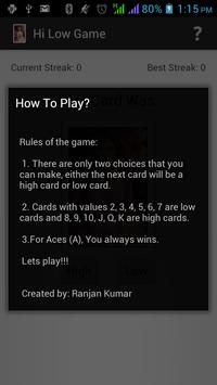 2. Cards with values 2, 3, 4, 5, 6, 7 are low cards and 8, 9, 10, J, Q, K are high cards.