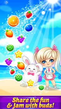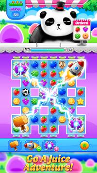 ● Move, swipe the fruit & candy of the same color into horizontal and vertical lines to make combos of matching 3 or more so you can create special juices & jam.