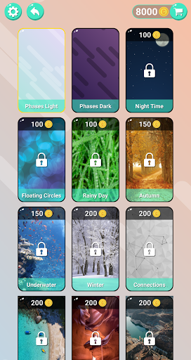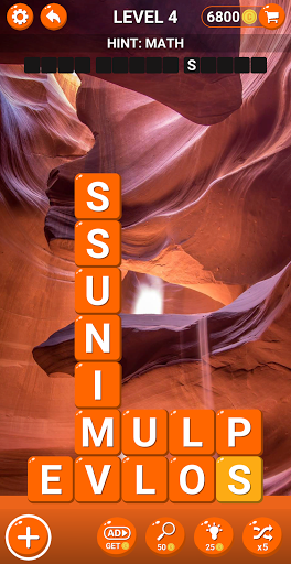 Each levels provide different difficulty. Game levels is divided in some theme appearance such as rain, winter, night, and many more. Correct swipe the letters horizontally, vertically to form a specific hidden word.