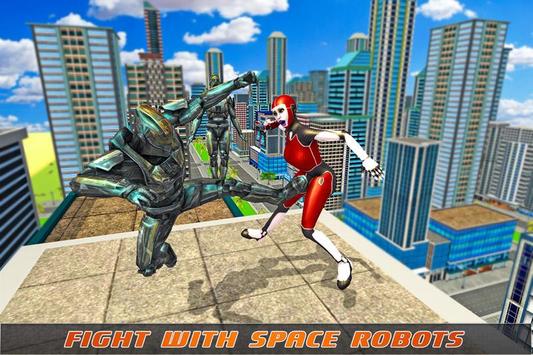 Start war of survival in modern futuristic era with strange spider hero war girl! Your city has been taken over by the highly advanced technology robots and aliens. The survival legend war is going on between hero war girl and evil robots and aliens in your urban legend city. You as a strange spider hero war girl fight against mutant enemies and finish the evil alien forces and robots who are on the mission to create rampage, chaos and destruction in your city. Become a