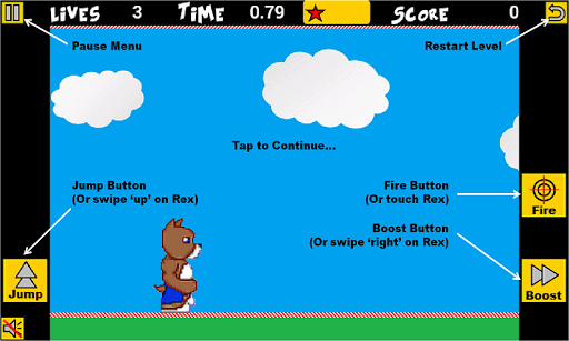 Help Rex the dog run, jump and shoot his way through this old school retro platform game, inspired by all the great 8-bit arcade platforming classics.