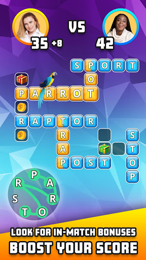 Look for in-match bonuses to boost your score in this exciting word competition.