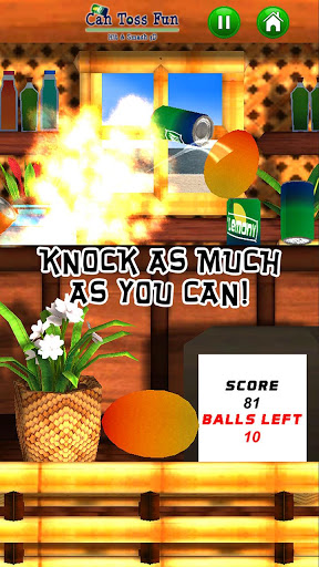 The target of the game consists in knocking down the cans with as less throws as possible. Simply aim at the pile of cans and throw them down with the provided fruit. Strike down the exploding cans to destroy the entire pile with one hit.