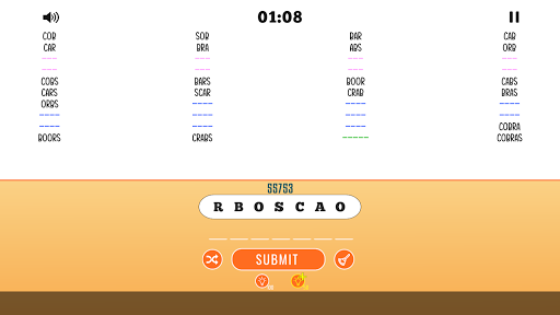 You are given 7 letters and a game board filled with all possible words (hidden until you guess them). The colored dashes seen on the board indicate the size of the word hidden behind them. Get as many words as you can before the timer runs out!