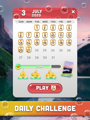 Swipe horizontally, up, down and diagonally to connect bubble letters and create specific hidden words.