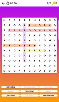 Word Search Match - Brain Puzzle shows you how many words there are in each section and gives you the options. When you find the word and connect it, simply move on and finish the whole section. The more you finish, the better it is!