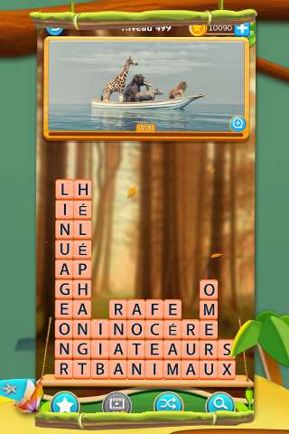 - Rechercher des mots sur le bloc de lettres en fonction des indices cachés dans les images
