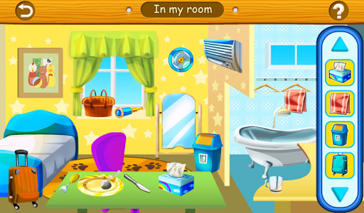 Children are explorers in life. They are curious about various things in life, especially common tools. They will play with these objects and hit them, explore them. The game “In my room” helps children to know the tools in life, suits their interest, enriches their common sense and improves their survival ability.