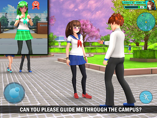 Take control of your anime girl high school character and change your campus life to win in love games. To advance in a high school adventure game, you must take an interest in sports, find the best match for yourself and experience the wonder of campus life with your anime girl.