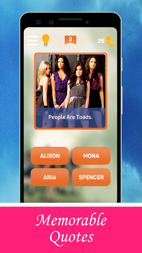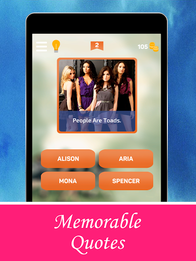 The most complex game about this TV series, where you can guess Characters (Spencer, Hanna, Aria, Emily, Alison or Ezra), Actors, Quotes and Facts from all seasons.