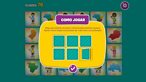 Aprender sobre os Estados e Regiões do Brasil fica mais fácil e divertido com o Interactive Play Estados e Regiões Xalingo. Basta escolher uma peça dupla do dominó e capturá-la com o aplicativo de Realidade Aumentada. E então, personagens animados vão lhe ajudar a descobrir as regiões, estados e capitais brasileiras. A linha Interactive Play mistura a brincadeira física com a realidade aumentada, proporcionando para a criança uma experiência ampliada de aprendizado. Os diferenciais da Realidade Aumentada são ativados exclusivamente pelo jogo físico. Sem ele, os usuários do aplicativo terão acesso a um jogo de memória virtual com a mesma temática.