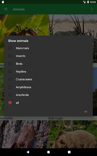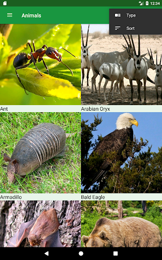 - Sort by name (alphabet) or class (Mammals, Insects, Birds, Reptiles, Crustaceans, Amphibians and Arachnids).
