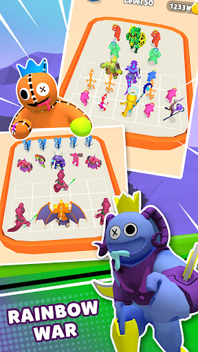 Do you like horror and adventure elements, merge games, fighting, and joining battle war.This is a survival game with colorful 3D graphics. You’re a Rainbow Stick Friends lover even though he's a horror monster character, let’s start and help Rainbow.