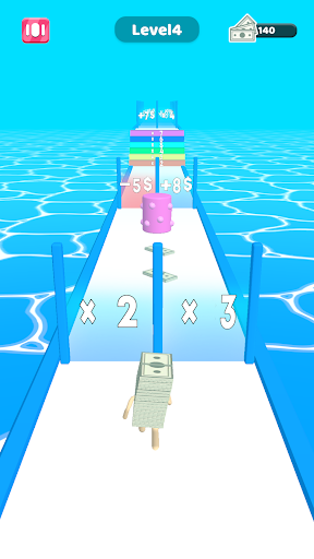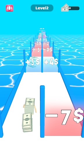 You control a banknote man to run on the road, you can collect the banknotes on the road or multiply them through multipliers, but this may test your mathematical ability.
