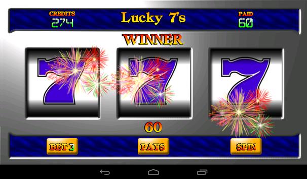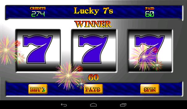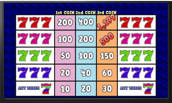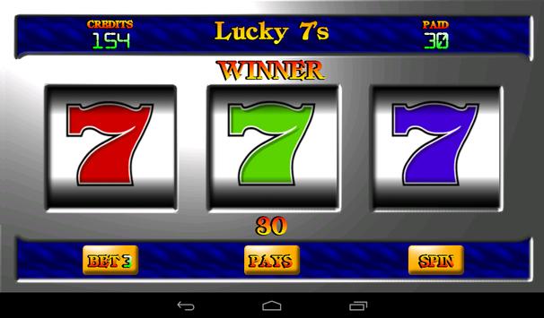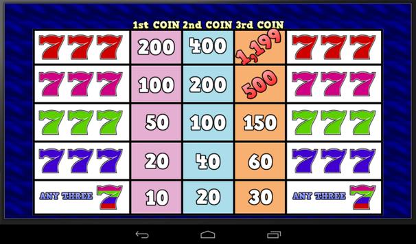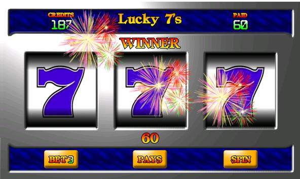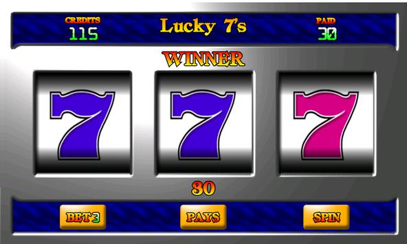 Lucky 777's is a simple 3 reel slot machine meant to act like an old standard 3 reel casino slot machine. The "reels" are laid out the same as an actual slot machine. The odds are the same as the 1990's 3 reel games with a 98% payout rate. If you miss playing the old 25c slot machines with coin payout, this is for you. Each time you win you can hear the coins hit the tray!