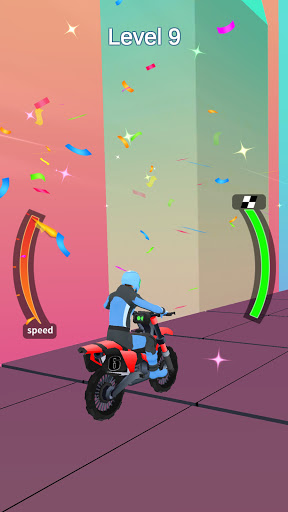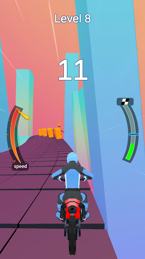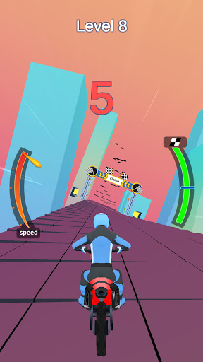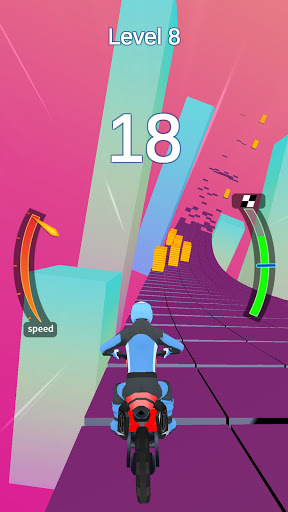 In "Merge Moto-Speed Motor Rider", you can gallop on the air road and shuttle between obstacles.