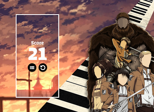 Piano Attack Titan Eren Anime Shingeki AOT Game is a small gift for all fans of Levi, Eren, Mikasa, Armin, Attack Titan, Shingeki. This is an extremely interesting game and you will never be bored. Play Piano Attack Titan Eren Anime Shingeki AOT Game and show your friends the highest score you reach. We hope that the Piano Attack Titan Eren Anime Shingeki AOT Game will make you happy in your free time.