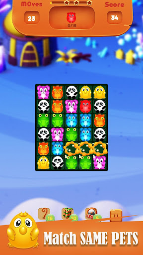 • Move and match 3 Pets or more of the same type to generate burst effect