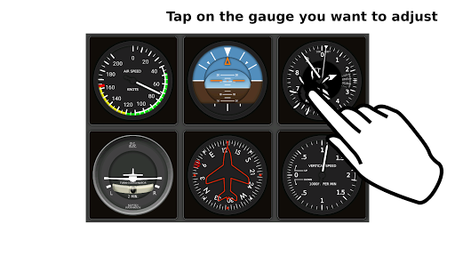 The artificial horizon, altimeter, and heading bug are adjustable using the touchscreen.