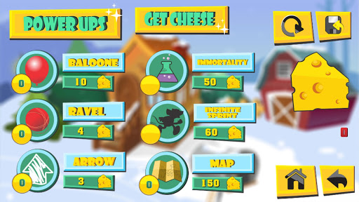 * Collect small cheese and get power ups