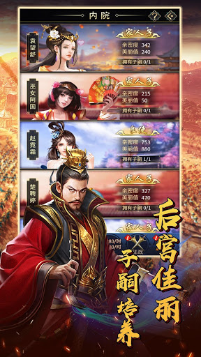 沙场归来,怎能没有美人相伴,萝莉,御姐,温柔,活泼,数百位后宫等你宠幸,打造你的专属后宫,独创子嗣养成,为你的国家带来千年盛世。