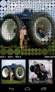 First you see a single circle of average color of the picture - the one from the gallery below. Then while you are touching circles, they