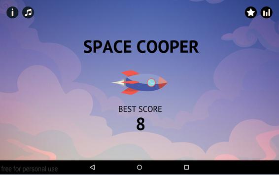 Space Cooper - dynamic arcade game in which you will be able to compete with other players in the reaction rate. Fly around obstacles, collect stars - buy new rockets.