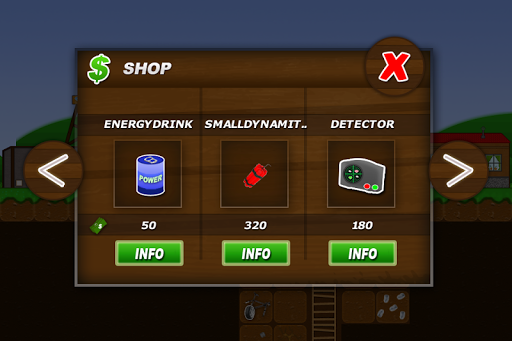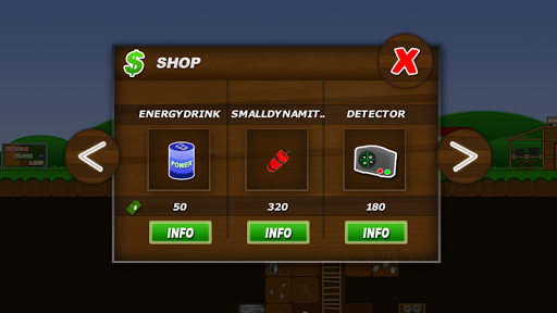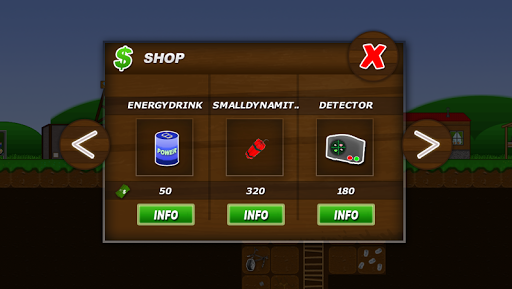 Treasure Miner is a classic sandbox game. Build your own mine infastructure and be the first miner, who discover rare artefacts, ores and gems. Sell your discoveries and expand your mine with new buildings, more lifts or better equipment. You can also upgrade your skills or buy new items, like ladders, lamps, signs or new tools.