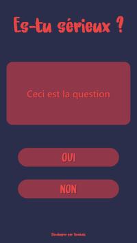 Es-tu sérieux est un jeux rapide, où le but est de répondre à des questions qui te permettrons de voir apparaitre une phrase qui se trouve être marante :)
