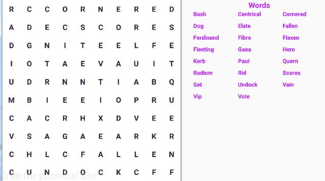 To play the Word Search, you can swipe your finger horizontally, vertically and diagonally to find your words