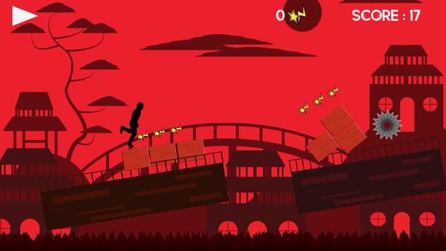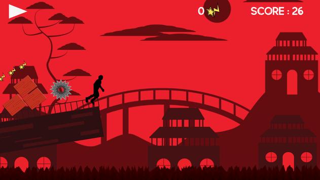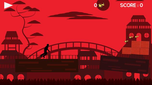 When you click on the Play button, the play will be, press the screen so that the ninja shadow jumps in front of you will be many obstacles you have avoided such fund or two or three Snadeg must and you must also avoid falling on the ground, you'll also earn a lot of points and stars