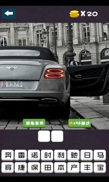 宾利、宝马、奔驰、法拉利、玛莎拉蒂? 你认识这些豪车车么? 2015年最好玩的看图猜车牌游戏!可能不可能,等你来完成! 赶紧来看看这些都是些什么车吧! 新鲜出炉的各种限量名贵跑车,赶快猜猜看,哪辆是你的最爱! *游戏操作* *从下方16个字中,选择出正确的车名,即可过关! *上百辆不同汽车,等你来识别! *如果你喜欢我们的游戏,请你分享它! 马上支持繁体中文版,如果有问题,请给我发邮件,我们会第一时间解决! 感谢您的支持!
