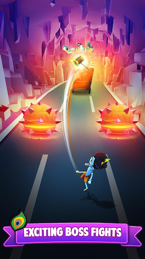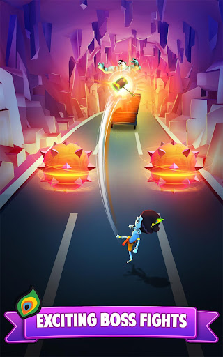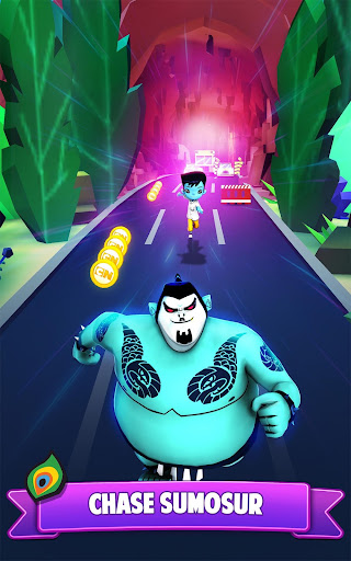 Use Hoverboards for free-run and glide through Mathura in style and give your run a Headstart or a Mega Headstart. While Kanishk keeps an eye on you throughout your run, Pick up Boss Fights with Sumosur in the Krishna Avatar and show him who's the real boss.