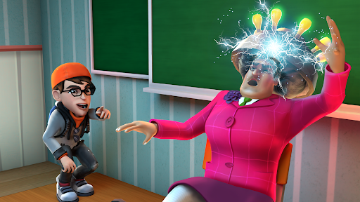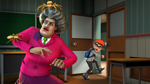 Now the annoying and scary teacher got mad at Nick and ran to catch and beat Nick.