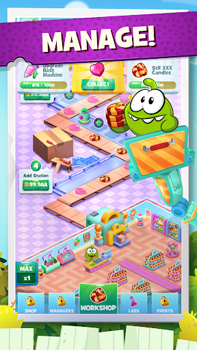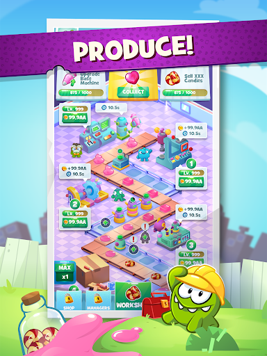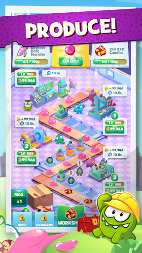 Om Nom is here and needs your help building the biggest Candy Factory of the world!