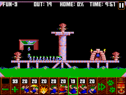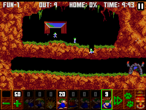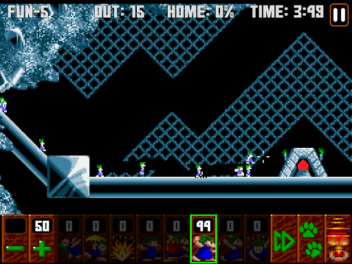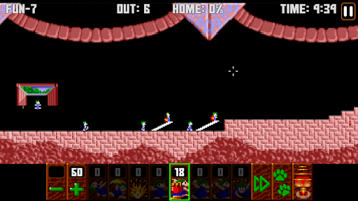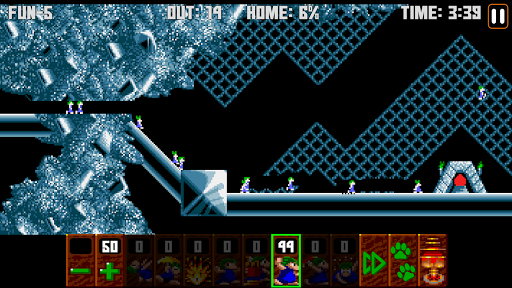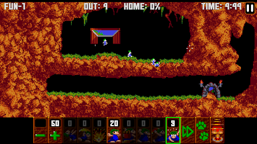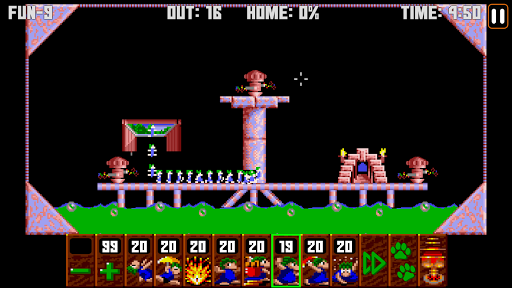 The goal is to guide a group of lemmings through a number of obstacles to their home. To save the required number of lemmings to win, you must determine how to assign a limited number of eight different skills to specific lemmings that allow the selected lemming to alter the landscape, to affect the behavior of other lemmings, or to clear obstacles to create a safe passage for the rest of the lemmings.