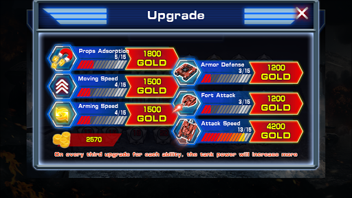 - Use the gold rewarded in the battle to buy power-ups or upgrade the abilities of your tank