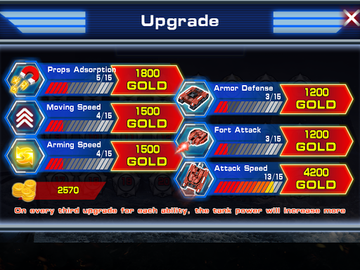 Armor Defense: Defense ability of your tank (level 0~15)