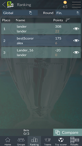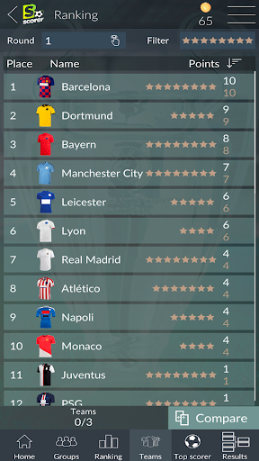 Welcome to the Champions League free sweepstake. Download BScorer and play for free to prove that no one knows more about football than you. Get in on the action and see sparks fly between friends, work mates, stranger… Forget about betting and experience the thrill of each match!