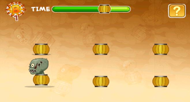 jumping on the zombie when it's heads pokes out of the hidden barrels.