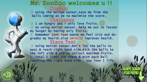 * Ball Falling(Football , volleyball, tennis) at Mr Zoo Zoo , and save him from kill & attack using run of motion sensor.