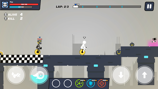 Riding your bike equipped with Flame Thrower, Grenade launcher, Gun,... You have to survive dozen of deadliest traps in the world, fight with the smartest AI Bots ever and leave your enemies behind your dust to become The Deadliest biker in the stickman realm