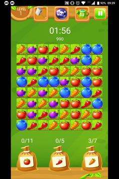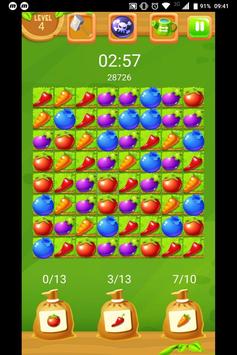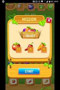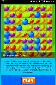 Para convertirte en un granjero orgulloso de sus hortalizas, primero tendrás que hacer una completa selección. Dispones de un tablero repleto de ellas, para meterlas en el saco hay que unirlas en grupos de un mínimo de tres ejemplares, todos ellos iguales. Así, poco a poco, irán sumando hasta completar la recolección.
