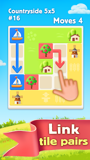 Line up entire board: pair similar tiles with the beautiful road and enjoy colorful pictures. The level is completed whenever you connected all the pairs! Remember: drawing a flow, you need to link paired pictures with a single line as crossing other flows increases amount of the moves!